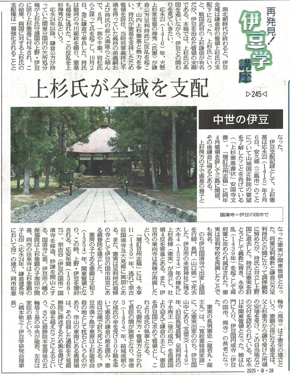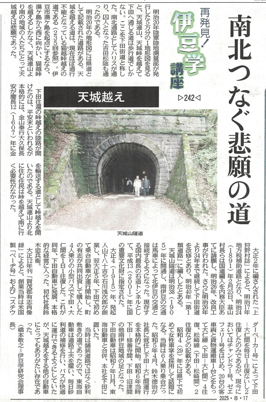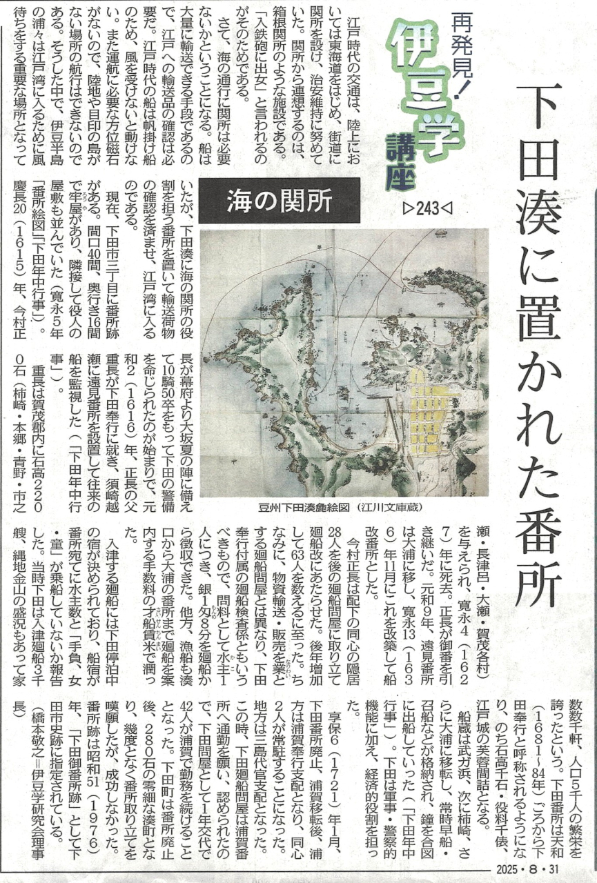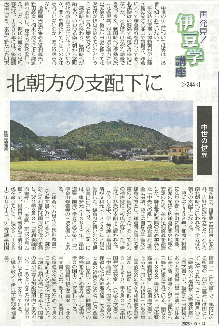 平成28(2016)年1月3日に「再発見!伊豆学講座」を「東京新聞静岡版」に掲載しました。ついで「中日新聞静岡版」「中日新聞中遠版」に掲載するようになり、現在は3紙面に同時掲載されています。隔週の企画で、伊豆全域にわたる歴史を中心とした連載となっています。