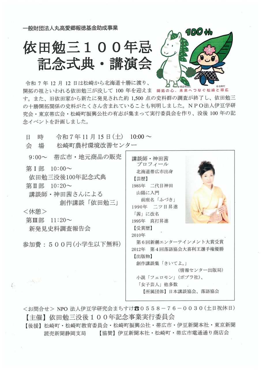 依田勉三没後100年記念事業