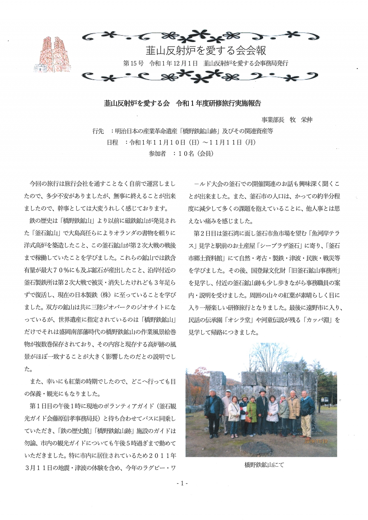 韮山反射炉が明治日本の産業革命遺産群のうちの構成資産として登録されて4周年になります。韮山反射炉を愛する会では、他の構成資産へ研修に出かけ、交流会をもって、韮山反射炉の価値の再確認、世界遺産をどのように地域や世界に広げるか、という活動を行っています。誰でも参加できます。足をお運び下さい。