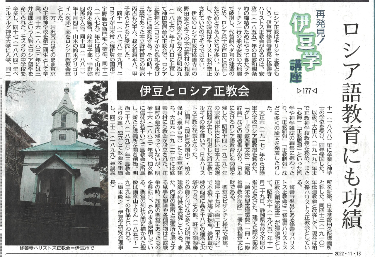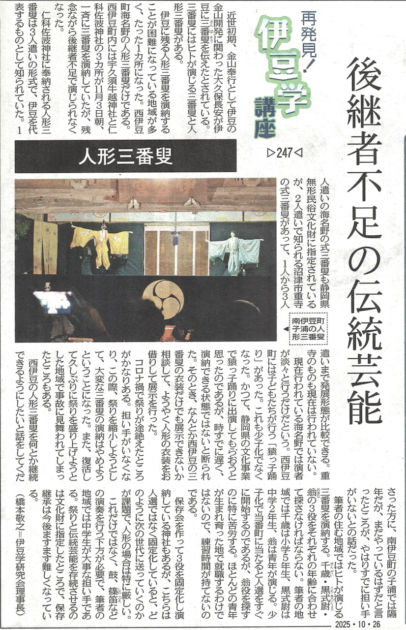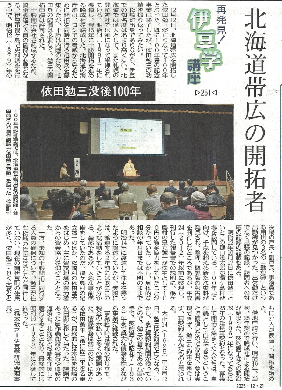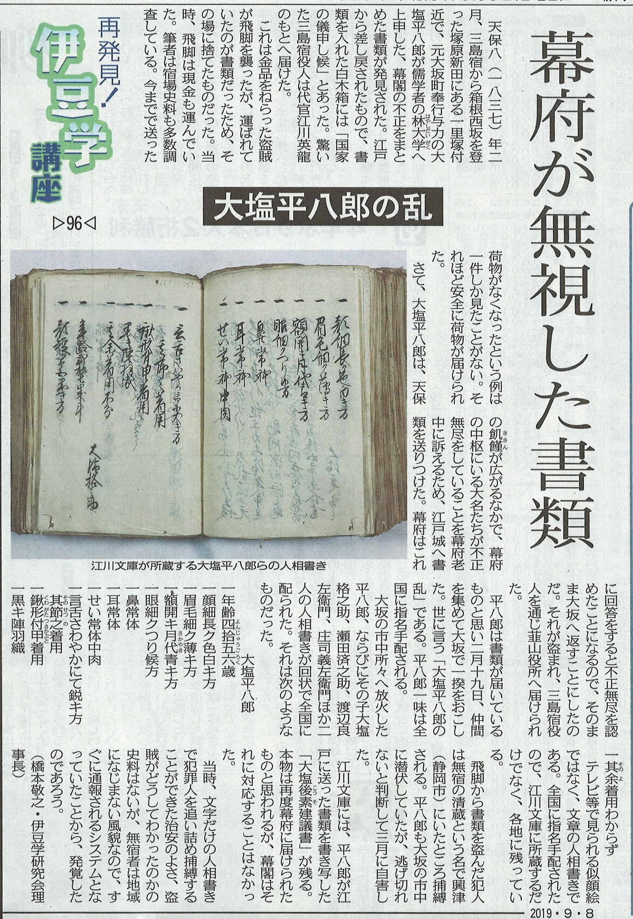 平成28(2016)年1月3日に「再発見!伊豆学講座」を「東京新聞静岡版」に掲載しました。ついで「中日新聞静岡版」「中日新聞中遠版」に掲載するようになり、現在は3紙面に同時掲載されています。隔週の企画で、伊豆全域にわたる歴史を中心とした連載となっています。