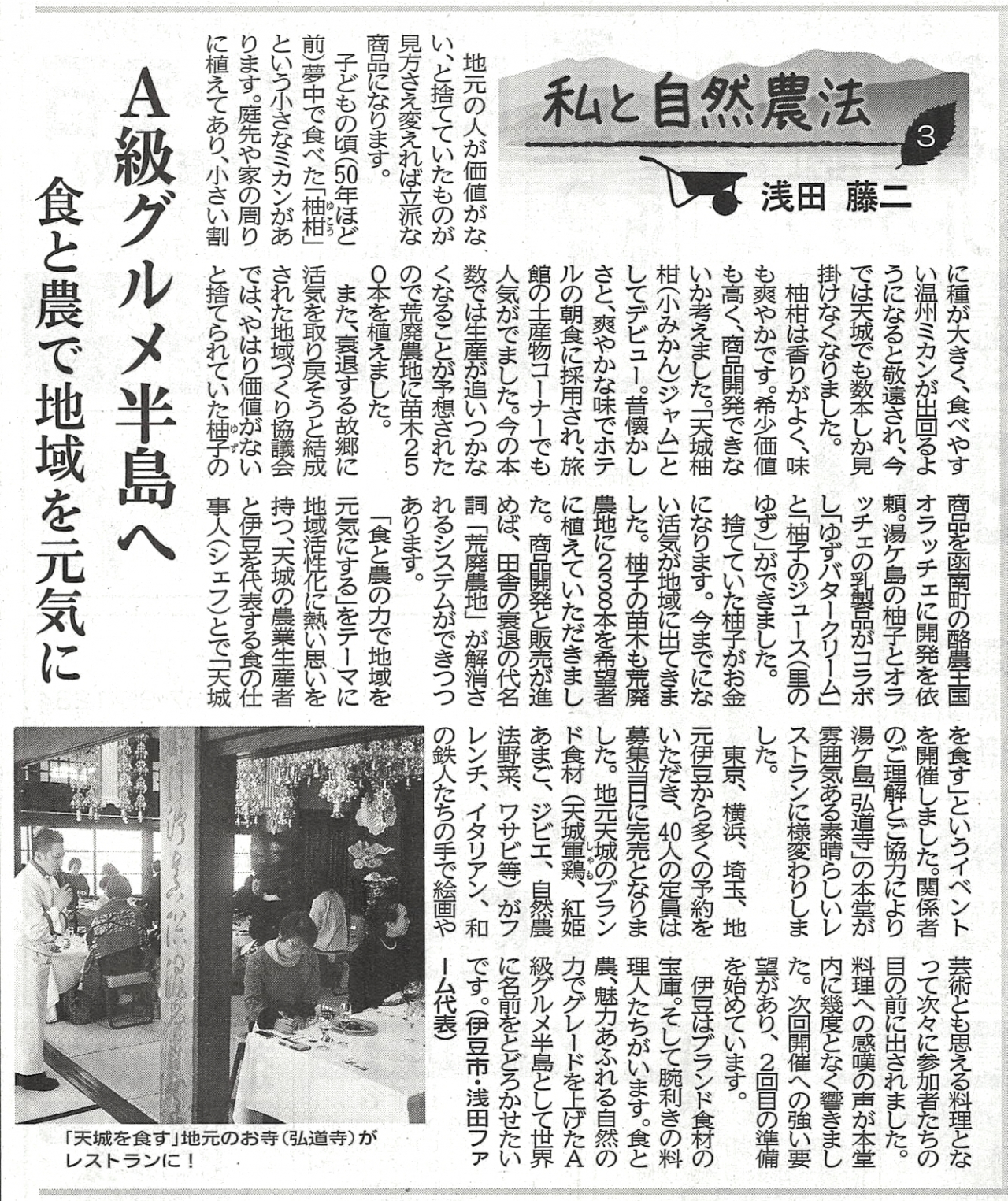 浅田藤二「私と自然農法」(伊豆新聞、伊豆日日新聞、熱海新聞連載)