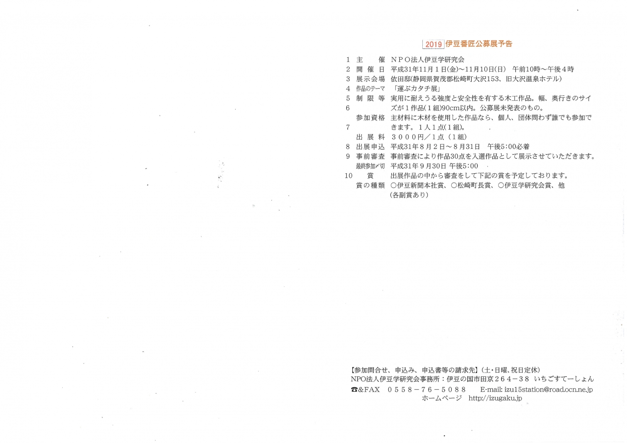 依田邸で開催しました2018伊豆番匠公募展」は終了しました。ご応募ありがとうございました。審査の結果、下記のように決まりました。