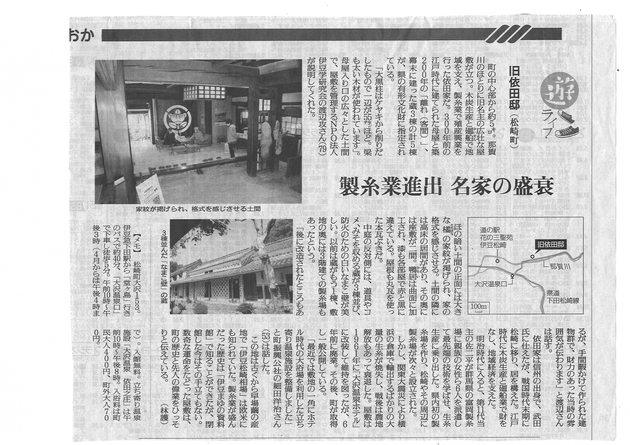 依田邸に関する記事を「伊豆新聞 松崎 依田邸の今昔、あす」としてまとめてあります。